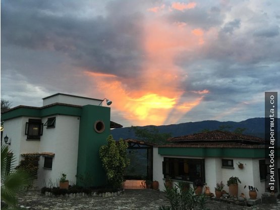 El Punto De La Permuta #VENDE o #PERMUTA FINCA en #ANAPOIMA #CUNDINAMARCA a 2 Km del pueblo... $800 MILLONES NEGOCIABLES... Area: 2 fanegadas con vegetación nativa. Hermosa vista hacia #SanAntoniodeAnapoima. Casa con 240 M2 de construcción, La casa cuenta con dos ambientes separados por un porche de entrada , Zona social, comedor , cocina y cuarto de servicio con su baño, sala amplia y corredor para hamacas. Cocina exterior completa y amplia con comedor y con zona de lavandería, la zona de habitaciones consta de 2 habitaciones en la primera planta , una de ellas con baño privado, baño auxiliar. En el segundo piso habitación principal con baño y un balcón cubierto tipo terraza. Además casa para cuidanderos con 2 habitaciones y baño completo. Cuenta con un tanque de almacenamiento de agua del acueducto con capacidad para aprox 50 m3. Zona de parqueo amplia y empedrada . Cuarto de herramientas de 4 x 4 mts. Transformador propio de 25kwa